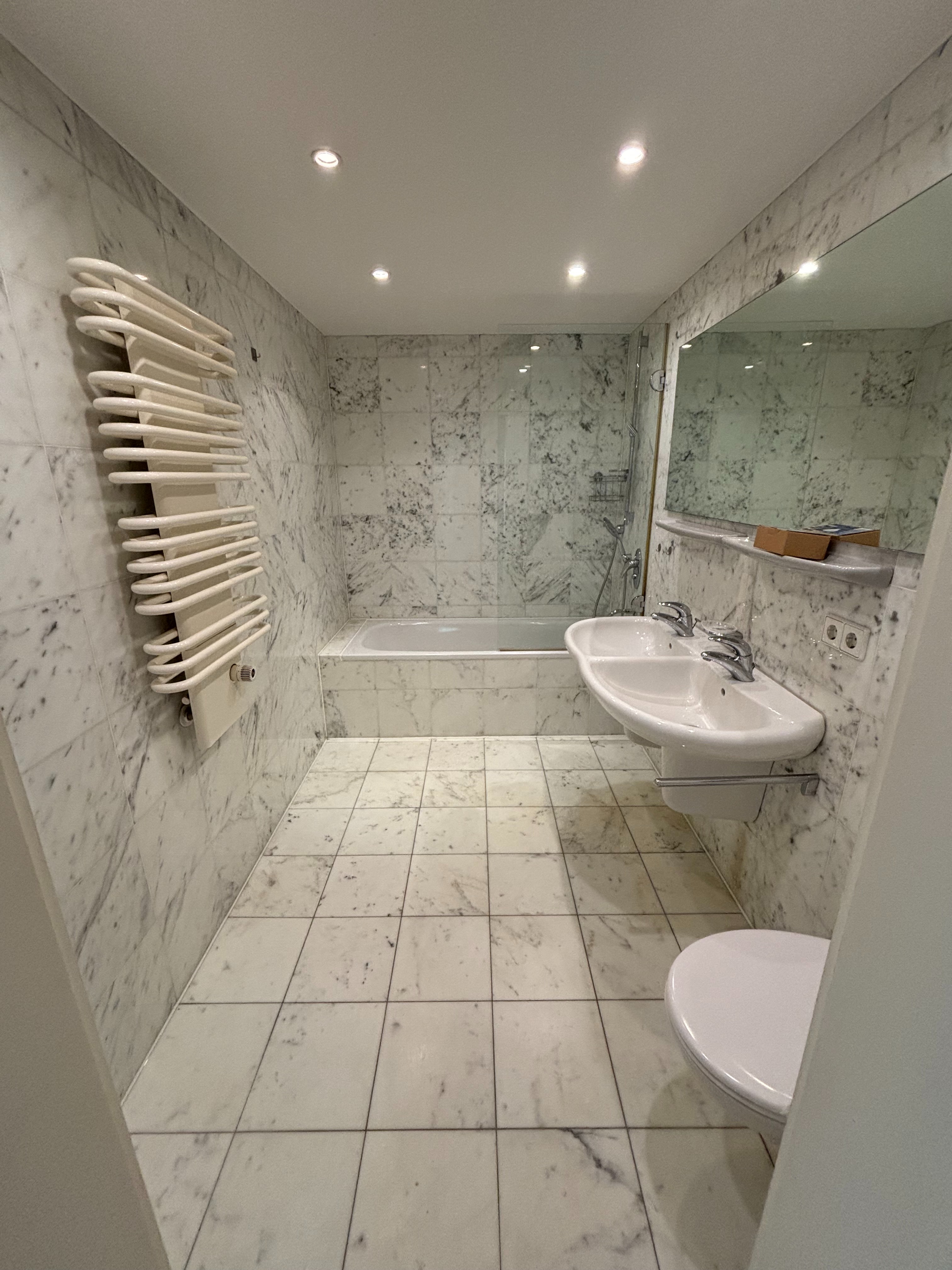 Die Wohnung besticht durch ihren offenen Grundriss und die lichtdurchfluteten Räume. Das Wohnzimmer und die Küche sind miteinander verbunden und bieten ausreichend Platz zum Entspannen und Kochen. Die beiden Schlafzimmer sind geräumig und bieten genügend Stauraum. Der Wintergarten und die beiden Terrassen vor dem Wohnzimmer laden zum Verweilen ein und bieten einen schönen Blick ins Grüne. Das Marmorbad mit Fußbodenheizung ist modern ausgestattet und verfügt über eine Dusche und eine Badewanne.