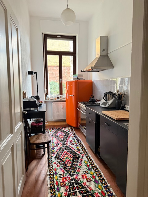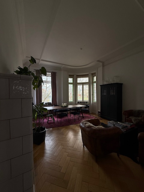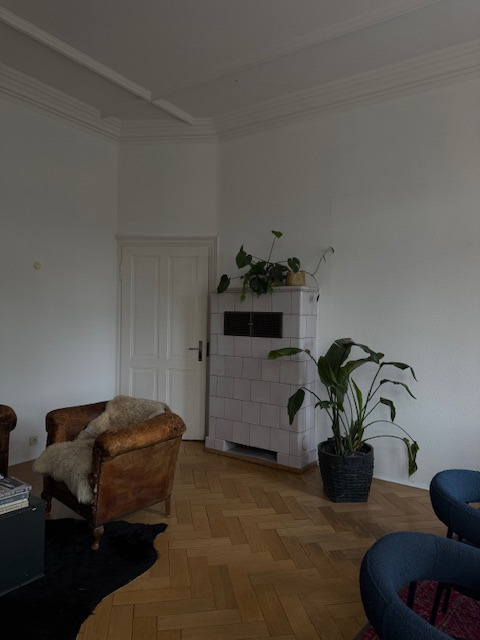 Die Wohnung beeindruckt mit seinen 4-5 Zimmern und einer großzügigen Wohnfläche, die viel Raum für individuelle Gestaltungsmöglichkeiten bietet. Die Räume sind lichtdurchflutet und durch die hohen Decken wirken sie besonders geräumig. Eine moderne Einbauküche mit neuem Gasherd kann vom Vormieter käuflich übernommen werden. Die Wohnung besticht durch ihre historischen Elemente, wie beispielsweise Stuckverzierungen, Dielenböden und einen Kachelkaminofen, die einen einzigartigen Charme versprühen.