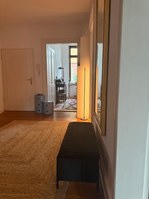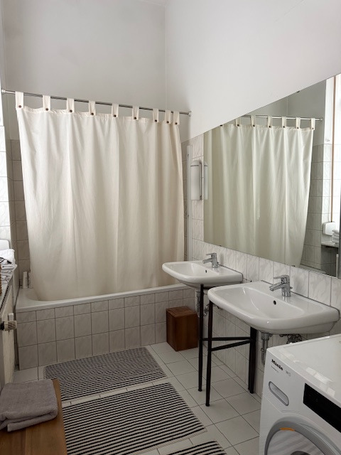 Die Wohnung verfügt über ein Badezimmer mit einer Badewanne und über ein weiteres Duschbad. Die Bodenbeläge bestehen aus Dielen, die dem Raum einen natürlichen und warmen Charakter verleihen. Wird die vorhandene 2. Küche nicht benötigt, ergibt sich eine Nutzung als 5. Zimmer. Die Qualität der Ausstattung wird als normal eingestuft, was bedeutet, dass die Einrichtung zwar funktional und ansprechend ist, aber keine luxuriösen Extras oder hochwertigen Materialien aufweist. Insgesamt bieten die Badezimmer eine moderne Grundausstattung für den täglichen Gebrauch.