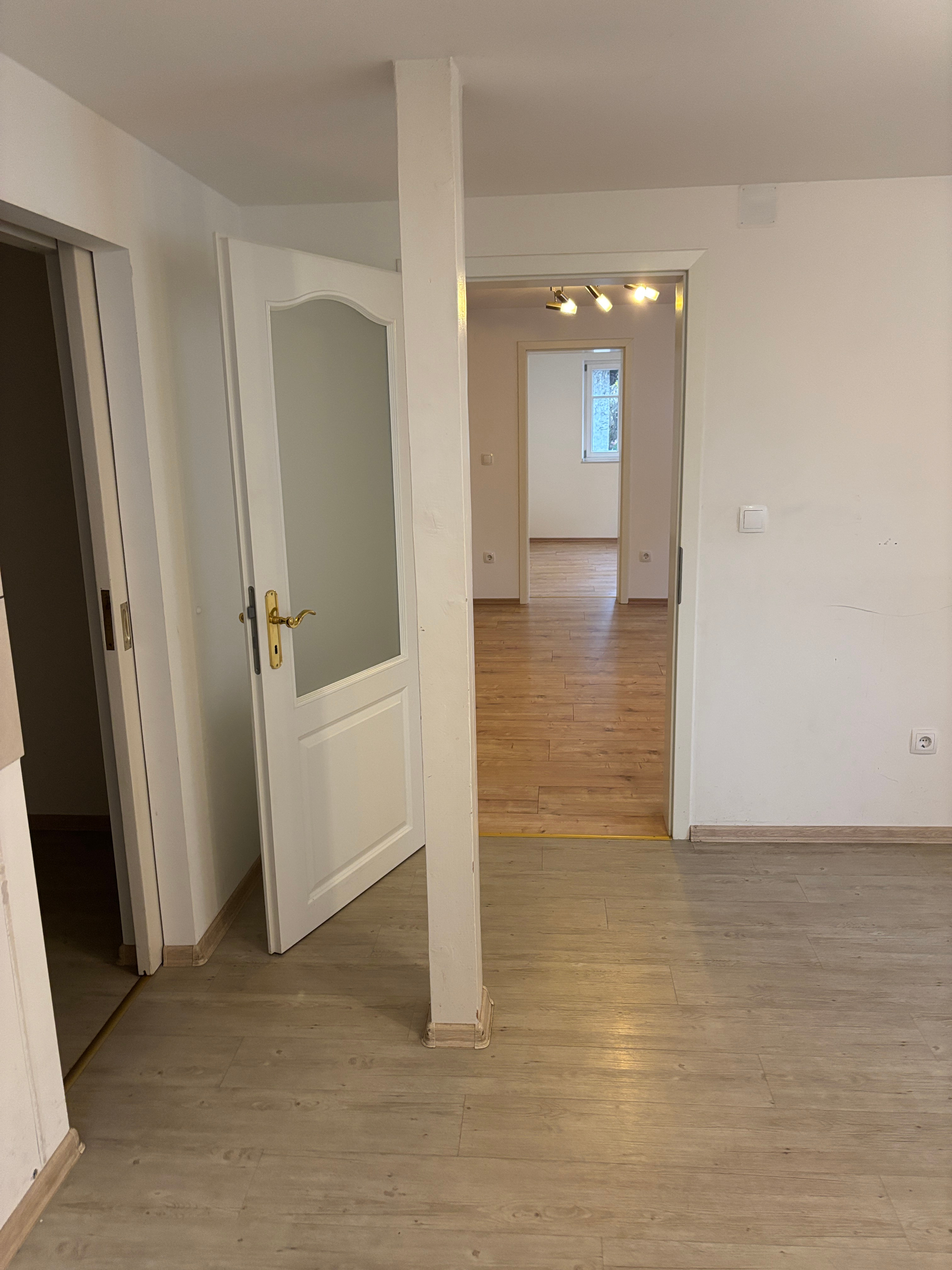 Die Immobilie verfügt über ein Badezimmer mit einer Dusche, einer Badewanne und einem Fenster. Die Bodenbeläge im gesamten Bereich sind mit Laminat ausgelegt, was für eine pflegeleichte und moderne Optik sorgt. Durch das Fenster gelangt viel Tageslicht in den Raum, was eine angenehme Atmosphäre schafft. Die Badewanne bietet Komfort und Entspannungsmöglichkeit für die Bewohner. Insgesamt ist das Badezimmer funktional und gut ausgestattet, um den täglichen Bedürfnissen gerecht zu werden.